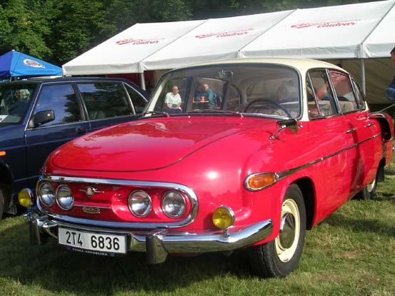 Dnes, 30.6, se v areálu zámku sjelo mnoho hezkých aut. Spolu s přemnohými exempláři škodovek, (tedy Felicie, Octavie, Spartak, Popular, Tudor, 1202), různě starými brouky, fordy a fiátky, se zde ukázalo samozřejmě mnoho tatrovek-na vyvýšeném prostranství před zámkem starší- různé 'hadimršky' a 'žehličky', níže potom dva tatraplány, černý a tmavozelený, a samozřejmě T603, zde v zastoupení několika pěkných černých(v největším počtu) a barevných T2-603 a jedné červenobílé jedničky. Dále potom 613, rovněž ponejvíce černé (sorry, nějak jsem je zapomněla vyfotit) a jedné T700. Počasí se vydařilo, jen se mi poněkud nelíbilo, že se dole na burze neukázal Mgr se svými speciálními puklicemi, znaky a štítky, jistě bych od něj něco koupila.