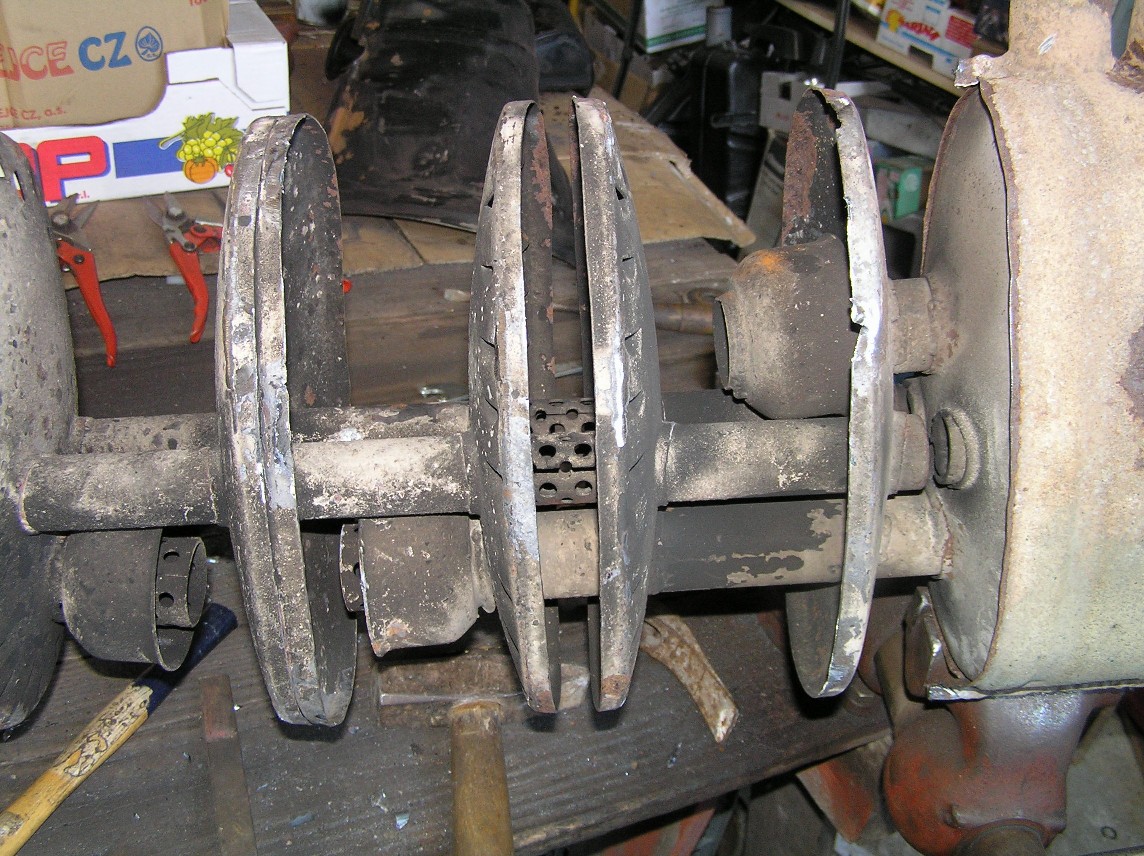 Tak to by si ale měl pospíšit, teď dokončuju opravu dalšího tlumiče, ale už je to pěkný opruz, jak je to více schnilé. Prakticky všechno mimo vnitřních přepážek a vnitřních trubek se musí vyměnit a to už je tak pracné, že by se vyplatilo vzít nový za nějakou přiměřenou cenu. Do budoucna budu muset vyřešit ještě další dva výfuky, bohužel na chromky.