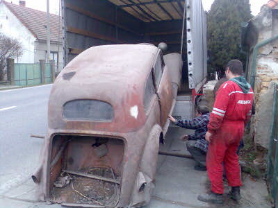 Bolo prave 24.12.2006, ked som rano sedel za netom a narazil som na inzerat v ktorom bola na predaj Tatra 57B, tak som zavolal a dohodol si stretnutie s majitelom. Po prijade a prvotnej obhliadke sme si z byvalim majitelom tlapli a dohodli sa. A zacalo to Kamarat dorazil zo 7,5t Ivecom a zacalo nakladanie na korbu. Nakolko sa v okoli nenachadzala ziadna nakladacia rampa museli sme si naplut do dlani a vylozit tatru na korbu rucne ( bolo nas 8 ). A tak sme si zadovazili najvacsi darcek pod stromcek.