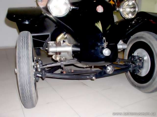 Fahrgestell Eine Antriebswelle wurde im Zentralrohr geführt. Motor vorne am Zentralrohr angeschraubt, hinten das Differential. | Vorderachse | steif, gefedert mittels Querblattfeder getragen vom Leichtmetall-Motorblock, zwischen dem Schmiedestück und der Blattfeder ist ein frikativer Hebeldämpfer. | | Hinterachse | besteht aus zwei unabhängigen Pendelhalbachsen, gefedert mittels Querblattfeder - oben am Differential angeschraubt und stützt sich mit ihren Enden an den Hinterradbremsschildern. Diese Lösung hat zur Folge, dass die Federung mit steigender Durchbiegung immer straffer wird. | | Räder | Felgen, 18" | | Reifen | Dunlop 4.75 x 18" | | Antrieb | Hinterachse | | Lenkung | mechanische Schnecklenkung | | Bremsen | Fahrbremse: mechanisch, wirkt auf die Trommel aller Räder Feststellbremse: mechanisch, wirkt auf die Trommel der Hinterräder | | Spurbreite vorn | 1200 mm | | Spurbreite hinten | 1200 mm | | Achsabstand | 2646 mm | | Bodenfreiheit | 220 mm | | permanenter Antrieb | 1:4.8 | | Fahrgestell-Gewicht | 520 kg |