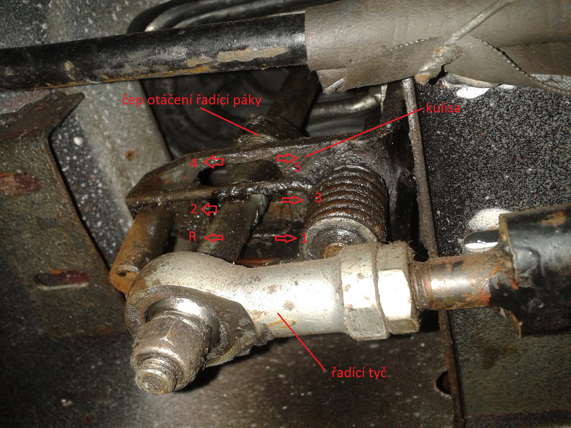 ano máš to celé opačne... "normálne" máme na 5q čap otáčania radiacej páky (to čo držíme v kabíne pri radení) uchytený nad radiacou tyčou, to znamená pohyb radiacej páky dopredu znamená (prevodom cez páku) pohyb radiacej tyče dozadu, a opačne... a podobne je to aj s otáčaním palca prevodovky, pohyb radiacej páky doprava znamená pohyb radiacej tyče dolava a opačne.
