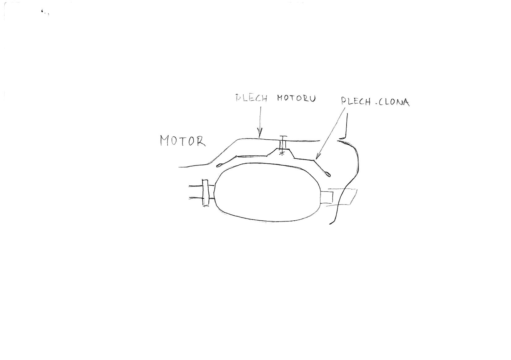 Michal B myslel asi plech medzi horným pláštom výfuku a uzkým plechom u zadného čela, na ktorý navazuje plechová stredová krycia vaňa pod remenicou. JA to tam mám. fotku nemožem nájst, sakra.