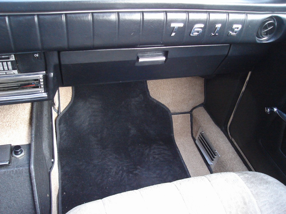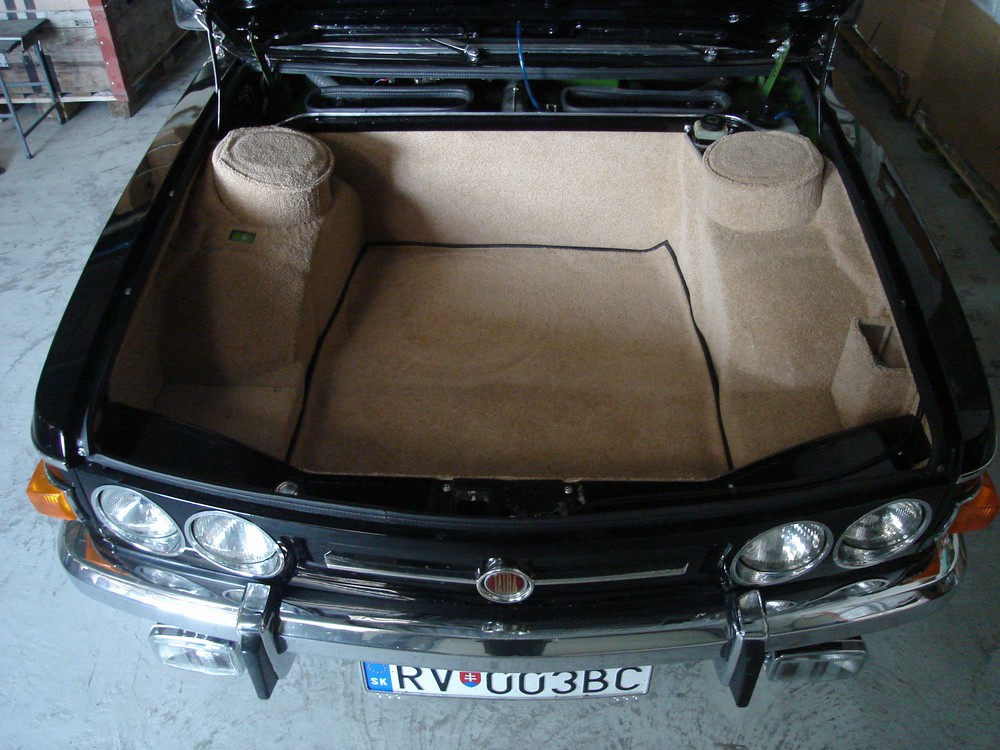 Ta karoseria je z roku 1983 a nekoroduje vobec nikde a to bola v kufri este povodna hraskovozelena farba. Chcel som ,,tapacirung,, robit povodne ako odnimatelni na suchy zips ale to ma skoro preslo. Nasiel som ale lepidlo ktore nieje tak drasticke ako nas chemopren ktorym som lepil koberce v interiery po bokoch. Este to nieje hotove, kedze robim vsetko sam a velaveci prvykrat takze z 10ich hodin prace je polovica o spekulovani ako nato. Je tam este velmi vela roboty a ako sa poznam nebude to nikdy fertig. Inac zhanam nove krycie listi na prahy, viete tie hnusne hlinikove a asi budem musiet davat chromovat vonkajsie klucky lebo neviem zohnat chromovane. Ten napis na palubovke T613 treba vidiet nazivo a potom hodnotit, nie je to original ale v kontexte to posobi velmi prijemne co mi zatial potvrdilo 90% spolujazdcov. Aspon tu palubovku ,,vidno,, pretoze povodne posobi ako hokerlik v rohu garaze.