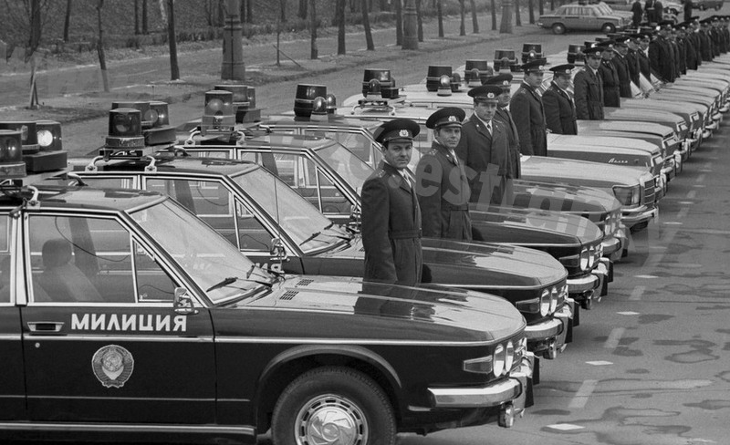 Tady jedna s Mercedesem z Moskvy roku 1983 už s jiným umístěním majáků.
