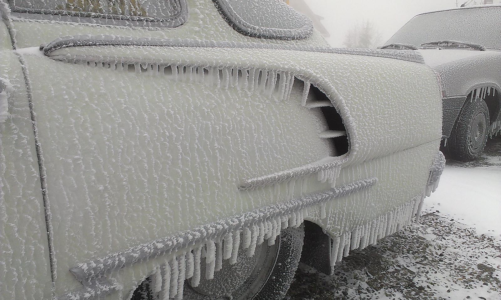Bufík už delší dobu stávkoval a ani toto ho nepřimělo k naskočení. Z nárazníku led odtál sám cestou domů, ze zadní kapoty šel oloupat před vjezdem do garáže a zbytek roztával 5hodin při cca 13st. C. byl to souvislý cca 1cm silný led.
