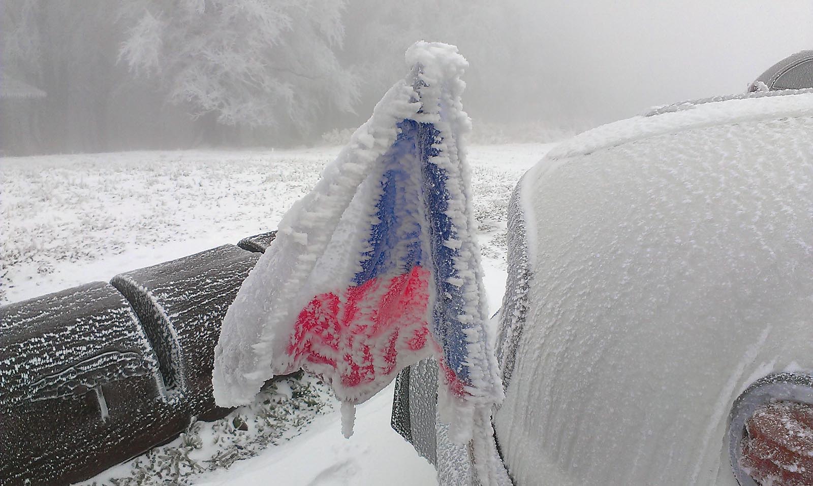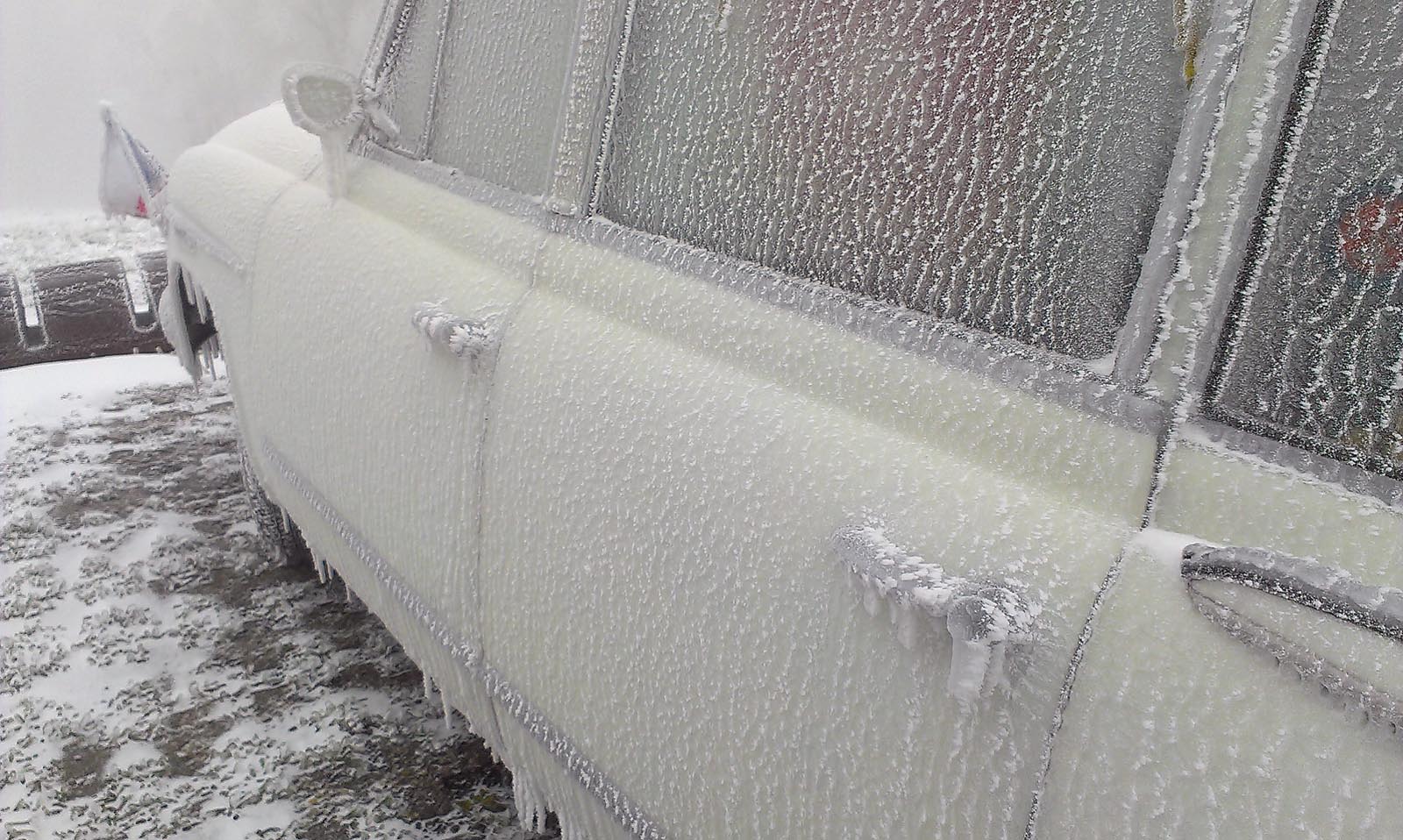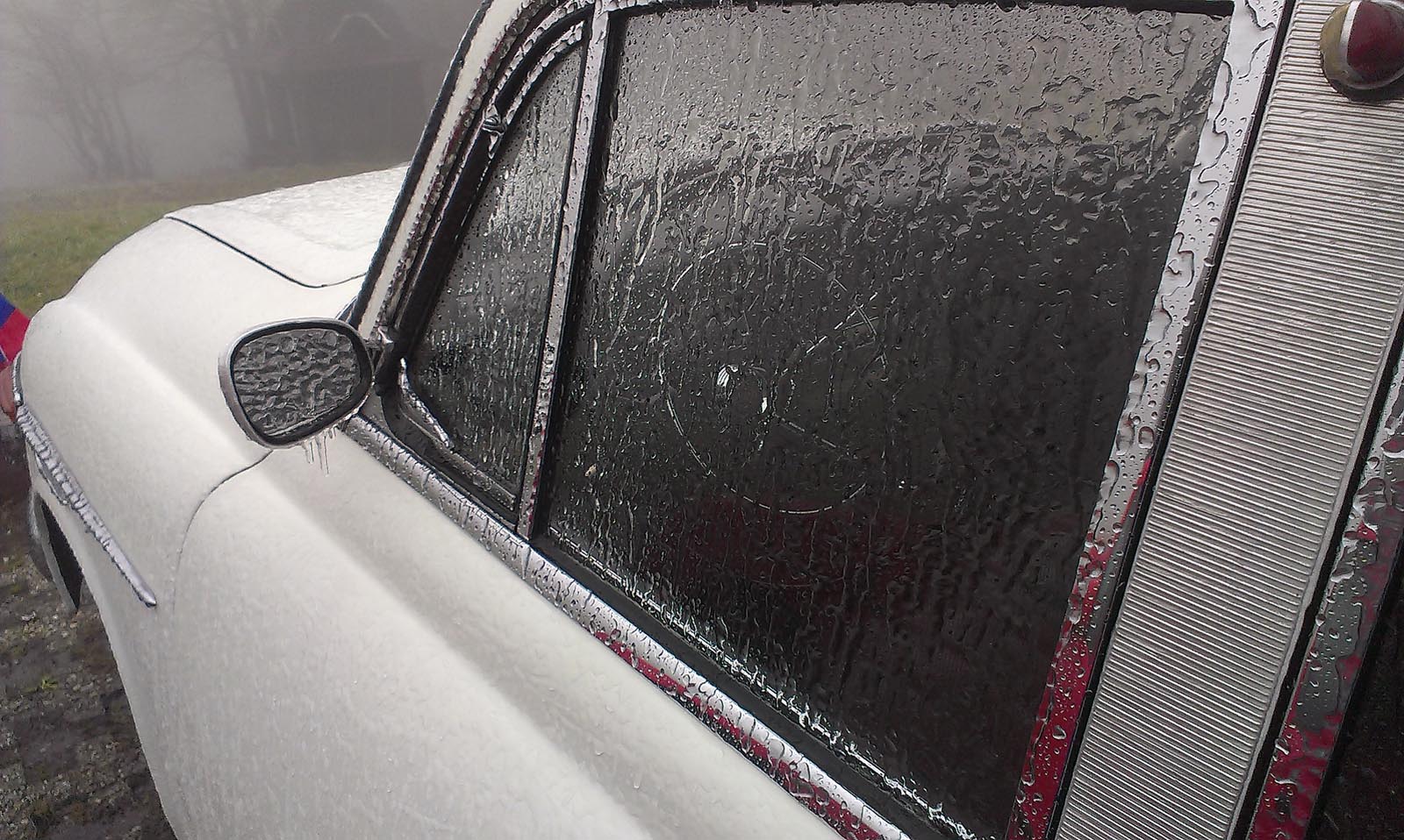 A ta nahlásila, že není problém, tak jsme hodinu polévali teplou vodou dveře a přední sklo,