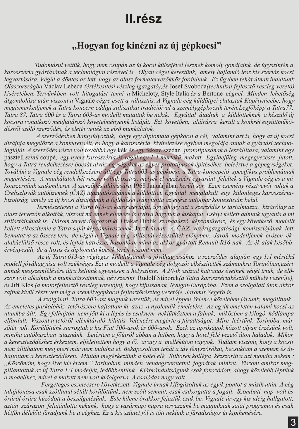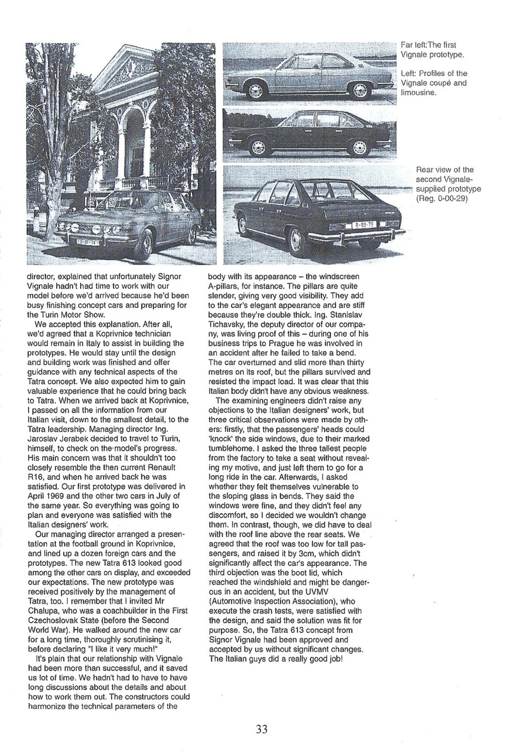 Zdravím. Kvôli zaneprázdnenosti som nemohol doteraz odpovedať na tvoju otázku. Stretnutie to bolo veľmi milé a Pána Galiu sme svojím záujmom veľmi potešili a to vlastne bolo pre nás asi z celej akcie najdôležitejšie. Keďže je už po jednom prekonanom infarkte, komunikácia s ním tým pádom nebola taká živá aby sme ho zaťažovali takým náporom otázok ako sme to pôvodne plánovali. Napriek určitým obmedzeniam sa ale veľmi rozhovoril a tak sme výber tém nechali naňho. Okrem v knihe uvedených tém sa diskutovalo napríklad o ,,bájnom" štvorvalci T613 o ktorom samozrejme nemal ani potuchy (teda nikdy neexistoval). Šesťvalcový prototyp ( chromka s čiernym lakovaním všetkého čo má byť na nej chromované) existoval ale našťastie nešiel do výroby ale motor sa ujal v motokrose. Veľmi zaujímavé (nepublikované) skutočnosti sme sa ale dozvedeli okolo histórie ,,vzniku a zániku" T613 Coupé Vignale, ktoré ale podľa prísľubu nebudem podávať ďalej medzi inými s pietných dôvodov....nerobilo by to dobre
