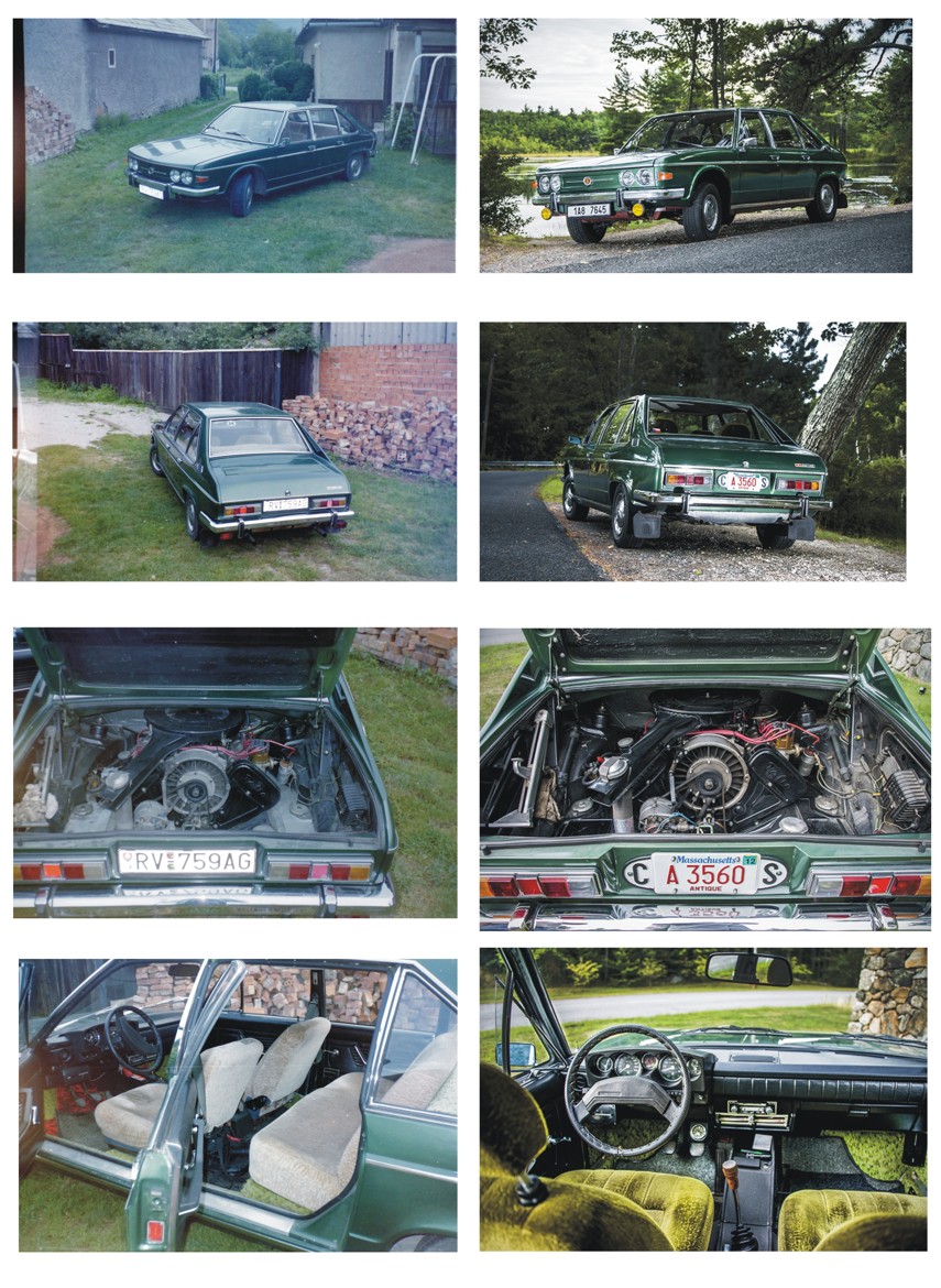 Vtedy keď som ju fotil na dvore starých rodičov kvôli predaju, bola asi rok po novom zelenom laku. Pôvodne bola samozrejme černá ako bota. Ešte toho roku sme s ňou išli na zraz do Hornej Bečvi z jasným cieľom, pomôcť kamarátovi ju tam predať čo sa aj stalo. Na tom spodnom zábere kde je náhľad do interiéru je odtieň myslím dosť dobre patrný. Dostala vtedy kvalitný lak. Taká hodne tmavá zelená. Kto by si bol pomyslel že raz skončí na Pebble Beach