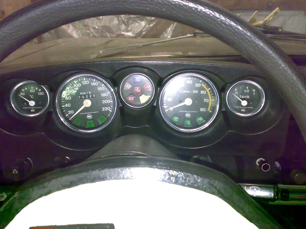okna už "thorax" a madarské budíky s černou obroučkou (madarské budíky se montovaly také s matně hliníkové obroučky(odstín spíš do mosazi + -)
