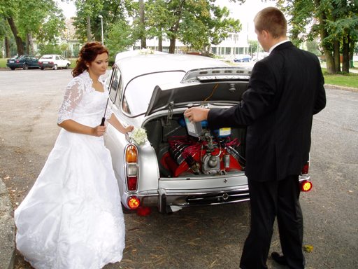 Jinak původně měla jet nevěsta zelenou Tatrou typ T (také z domácí garáže) protože se v ní vdávala