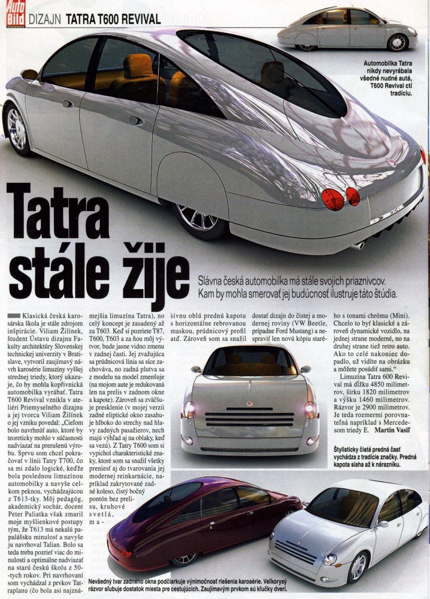 Je to zajmavá studie. Navrhl bych větší přední světlomety, oproti tatraplánu kulatější předek, mírně upravil tvar chladiče, a jinné přední blinkry umístěné podobně jako u t603 na blatnících. Čelní sklo bych snížil, naopak nahoře nad zadním sklem bych navrhl náznak ploutve jako je dole. Boční okna bych obtáhl úzkým proužkem z chromu. Také bych zrušil spáru mezi zadnímy světly a krytem kola (tu vrchní) a tu spodní upravil tak, že by se pozvolně zvedala směrem vzhůru, až by a místech kousek od světel vyůstila ve vrchní spáru. Co vy na to?