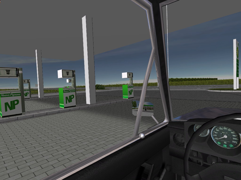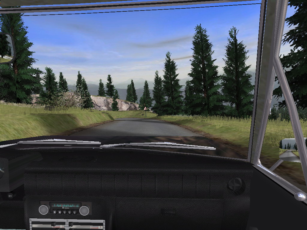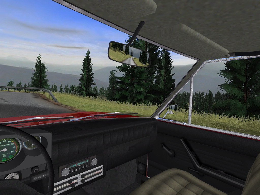 Výborně, volant i koberec má správnou barvu. Koukám, že jak natočíš pohled mimo hlavní osu, tak je obraz dost deformovaný. Ve hře mi to tolik nepřipadalo...