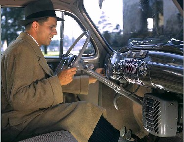 Fotka vysloužilého policejního auta s květináčem na nárazníku mi připoměla scénu z filmu Slavnosti sněženek, kde pán ve staré "americe" veze kozy na pastvu a za zadním nárazníkem má strčenou kosu s hráběma.