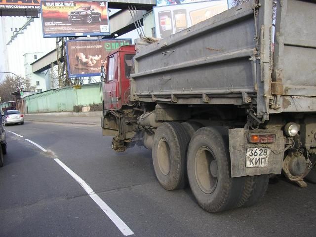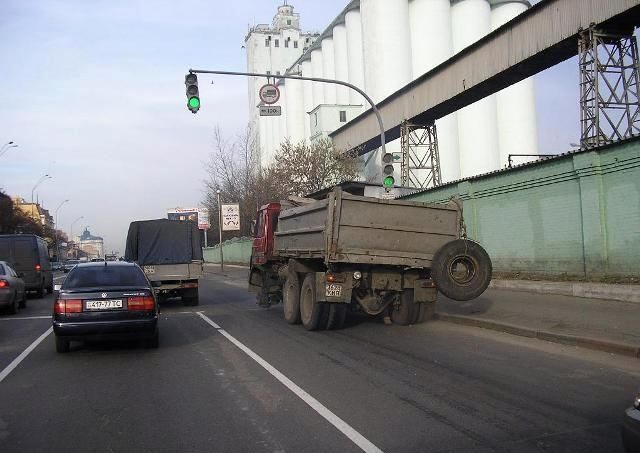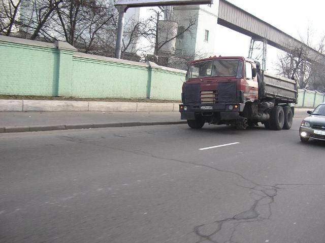 mne sa páči, ako tú Tatru vyvažujú s tým odpadnutým kolesom - nečudujem sa, že odpadlo, keď je také ťažké...