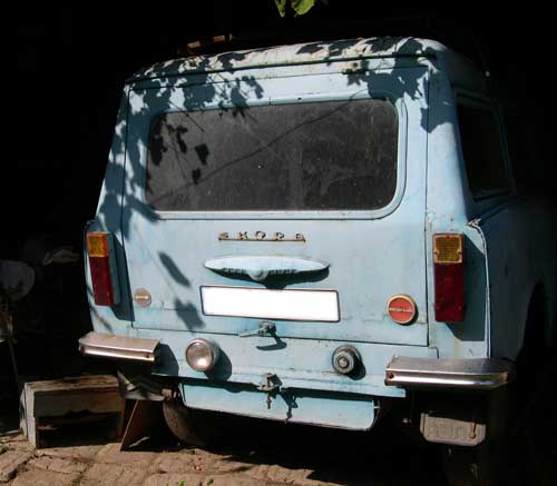 Z Tatry tam vidím zadní světla (T815), osvětlení SPZ tipuju Volga 21, zadní blatník dle tvaru připomíná Trabant 601 Combi, zadná dveře ARO 240... Nebylo by více fotek?