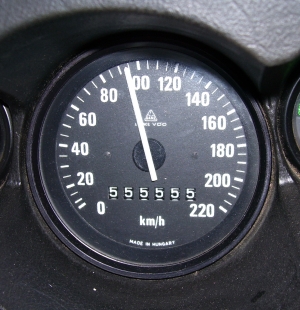 Rýchlomer vtedy už lietal z 80 km/h do 220 km/h, vtedy znova klesol na 80 km/h a znova vybehol na 220 km/h a tak stále dokola... pri spomalení na cca 4700 (?) otáčok za minútu sa už oprel na maximálnu hodnotu a potom už pozvolna klesal, to už som spomaľoval dialnica vstupovala do mesta.
