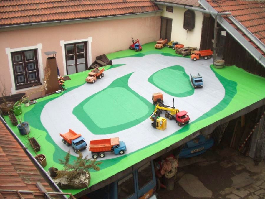 A takto to vypadá u nás doma (jedná se o střechu přístřešeku pro jednu Tatru a jedno menší auto - Tatru Betu)