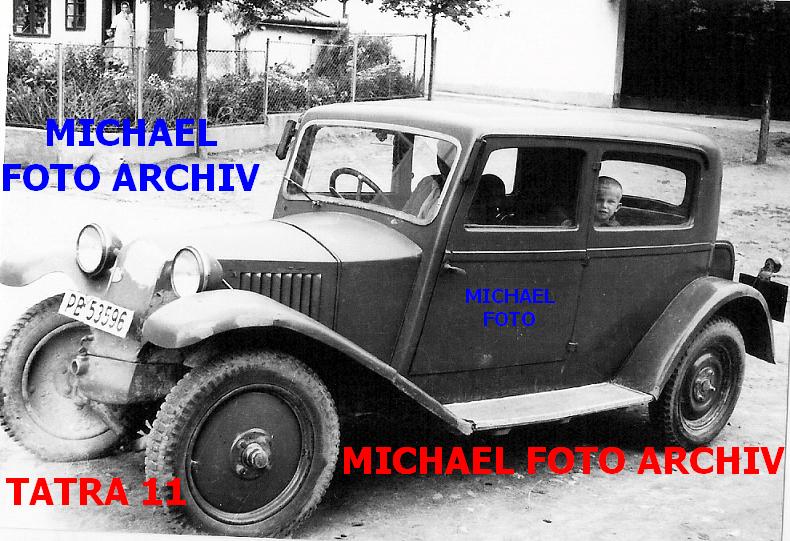 První snímek zachycuje Tatru 11. Karosérie je postavená celá znova. Kapota dostala nové blatníky, upravené z jiného vozu. Pozůstatek po otevřené vaně není viditelný. Přestavěno v půlce 30tých let, někde kolem Holešova. Foceno za války.