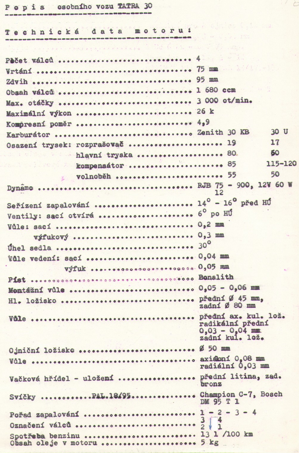 Děkuji. Přikládám tabulku, kterou jsem vyškemral v kopřivnickém muzeu, od kolegy z klubu jsem ještě získal podobnou, kde se navíc uvádí, že sací ventil zavírá 40 až 66 stupňů po DÚ. Bohužel hodnoty výfukového ventilu jsou asi přísně střežené státní tajemství