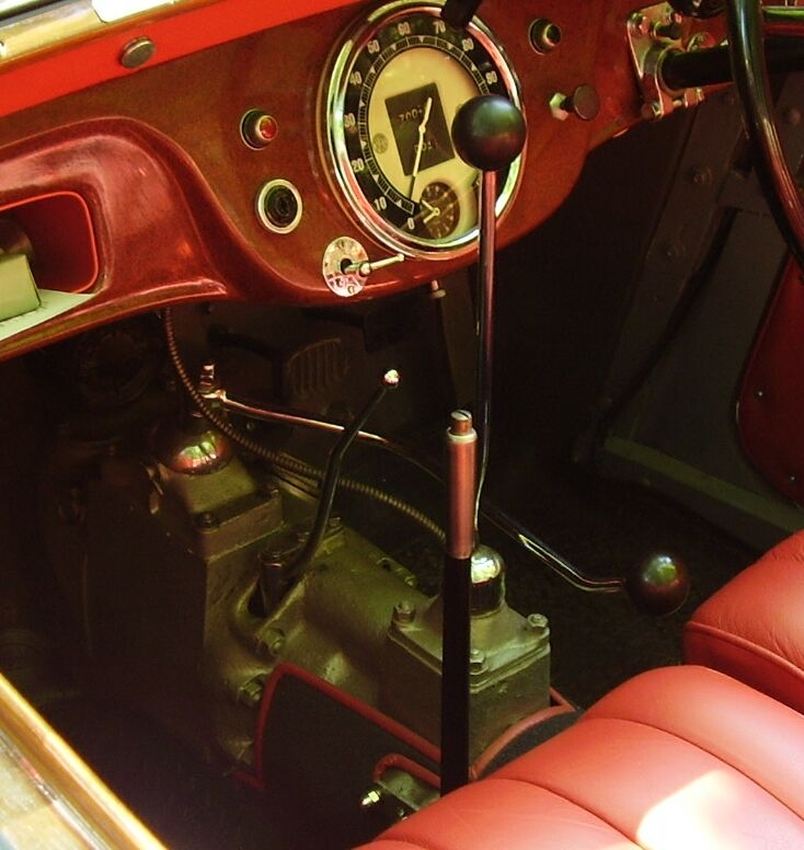 Rychloběh mám na svojí T75 1934. Je to ta delší páka na obr., která je normálně v dolní poloze a řadí se přesunutím páky nahoru, až k přístr. desce. Řadí se nornálně po vyšlápnutí spojky. Rychloběh je možno použít se kterýmkoliv rychlostním stupněm (i se zpátečkou), ale s I. nebo II. je to nesmysl. S trojkou jej občas používám v kopcích, kde IV. už to nebere a normální III. se zbytečně moc točí. V podstatě se tím rozpůlí interval mezi III. a IV. Klasické použití je ovšem na delších rovinách se IV., kde se sníží otáčky motoru a auto jede rychleji. Jak už zde někdo psal, je to vlastně jako V. Volnoběh (pokud je montován) se řadí malou páčkou vlevo od řad. páky jejím otočením doleva. Funkci zde již popsali kolegové přede mnou, s jeho využitím lze za určitých okolností i řadit bez spojky, ale toto považuji za pochybnou výhodu. Více zde k tomuto tématu bylo již dříve napsáno ve vláknech T75.