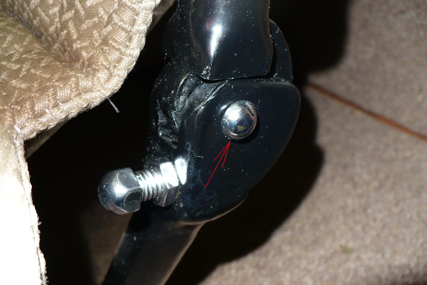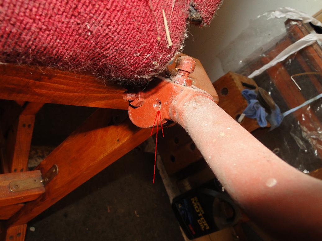 Ďalej výplet tých sedačiek som použil úplne noví aj keď som tiež mal dosť dobrý, ale nechcem aby časom sa trhal, predsa za 70 rokov je ten drôt už oslabený dosť. Použil som jeden matrac z kovošrotu za 5 € nebol vôbec hrdzaví a rozmer mal asi 150 x 200 cm. Bola to zrejme obyč. pružinoví matrac. Pri rozoberaní som postupoval takto: roztrihol som ho na tri časti,( Taká bola potrebná dĺžka) tie tenké pružiny, lebo tie som nato použil a najprv som ich ručne vytáčal, ale keď už som mal zo 4 mozole tak som použil vŕtačku. Do skľúčovadla som uchytil pružinu a v malých otáčkach ju vytočil.Potom som tie pružiny splietol a na potrebnú dĺžku skrátil. Tie veľké pružiny som použil na zadné sedačky, keďže som aj tam mal asi 4 prasknuté a keď som ich rozoberal tak ďalších 5 sa zlomilo. Ostatné boli tak oslabené že keď som ich trochu natiahol ostali natiahnuté, a keď som ich stlačil, boli stlačené. Tak som ich vymenil všetky, nechal som len tie po obvode, lebo tie boli dobré a sú aj menšie. Mám ešte dotaz. Na prednej sedačke som mal malé šruky, ako na foto je šípka, ale videl som že tam majú nity. Načo to slúži? Mysle som si že ak tam majú byť šrubky tak na zaistenie operadiel, aby sa nedali povitiahnuť?