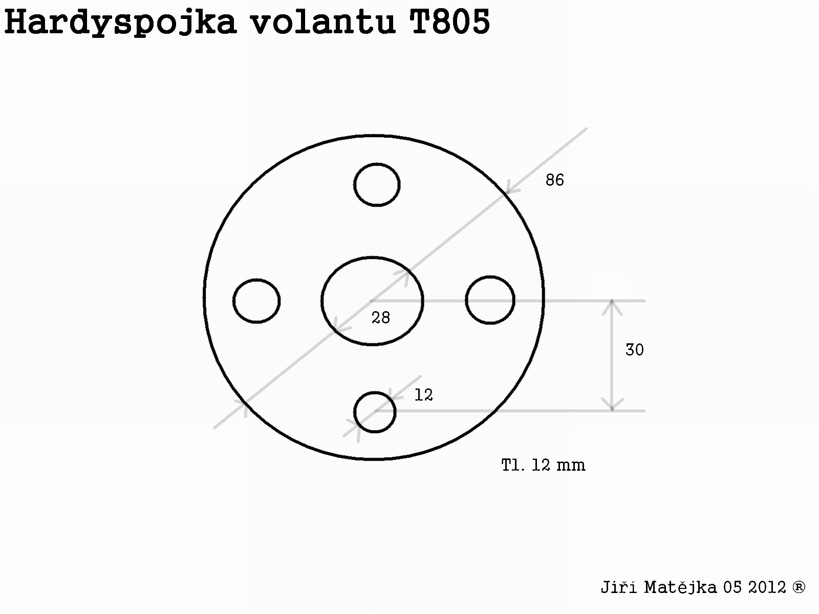 Dík Jerry, asi budu věřit tvým rozměrům. Já jsem z toho pokrouceného zbytku odvodil průměr 85 mm, tloušťku 13 mm a poloměr roztečné kružnice 31 mm.