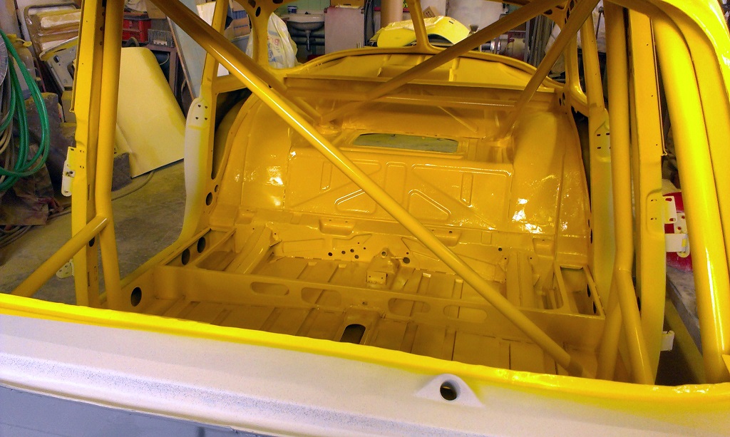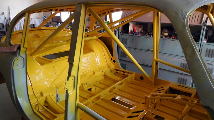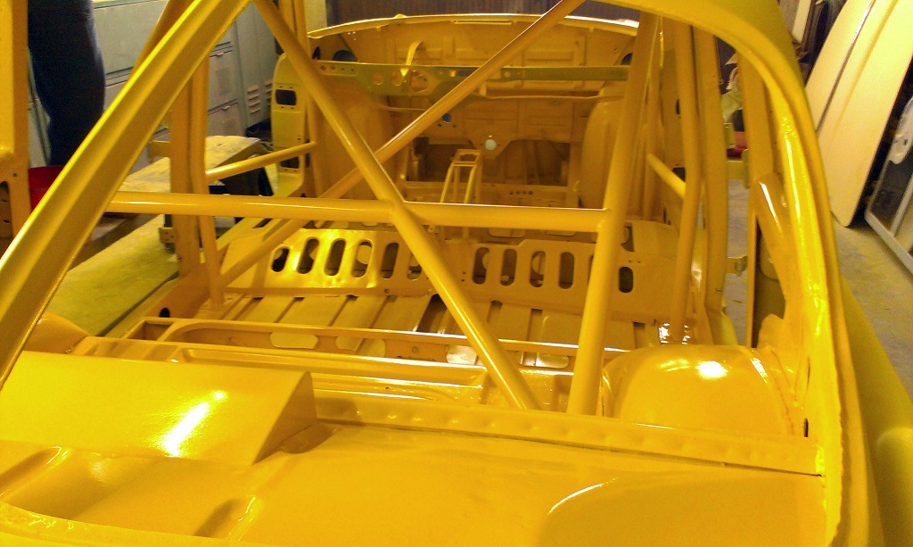 Je svařený přímo v autě, už se nedá vyndat a řády FIA stanoví přišroubování do podlahy na vyztužené plotny, které jsou k podlaze přivařeny. nikde jinde nesmí rám nijak vyztužovat karoserii historického závodního automobilu (například přivařením ke střeše, nebo sloupkům karoserie). Zadní ukotvení je přišroubováno i přivařeno. Dělal to klučina, co dělá rámy pro Fabie S2000 a udělal i spoustu historiků.
