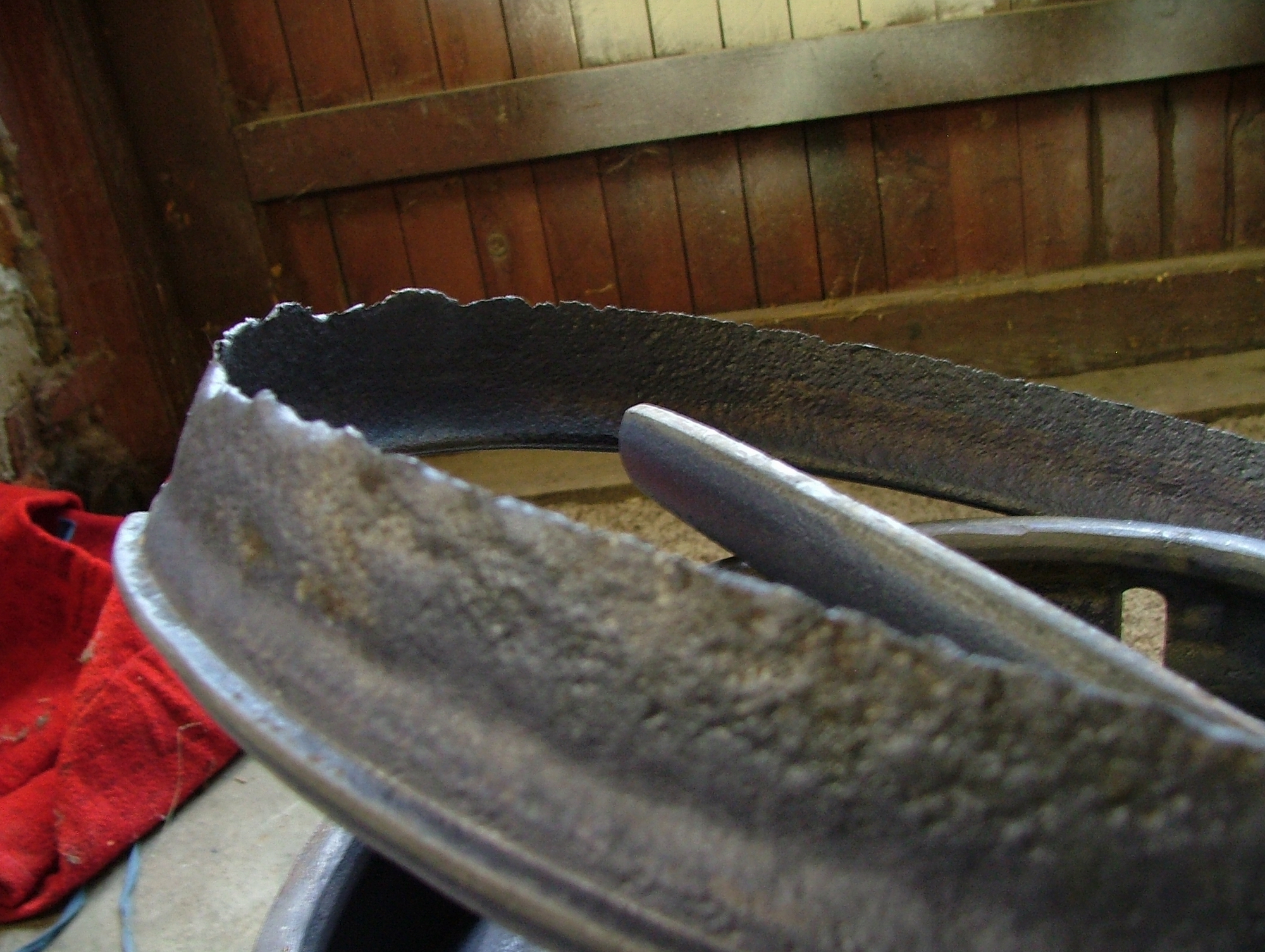 To sou fotky, z jednoho disku, ostatní pořád podpírají auto. Odrezovačem to mam natřený už ze zvyku. Když sem v pátek dočišťoval ty drážky, tak už tam byla mírná liška... Natíram odrezovač i na místa kerý sou vyboušený po vyvaření a je poznat, jak to oxiduje (odrezovač úplně zčerná), pak na takovejch místech (bez ošetření odrezovačem) vybíhá koroze jako první (po 4 letech v provozu