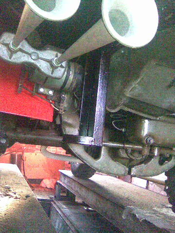JO- motorek kompresoru má být nastojato (nejsou v tom plechovém držáku 4 dírky??) a ovládání dvoutónové houkačky je přes čep (táhlem ukončeném v kabině kuličkou jaká je na řadící páce nebo i menší)vyvedeno k nohám spolujezdce (v podlaze by měla být díra..)který ji za jízdy ovládá pohybem nahoru a dolů