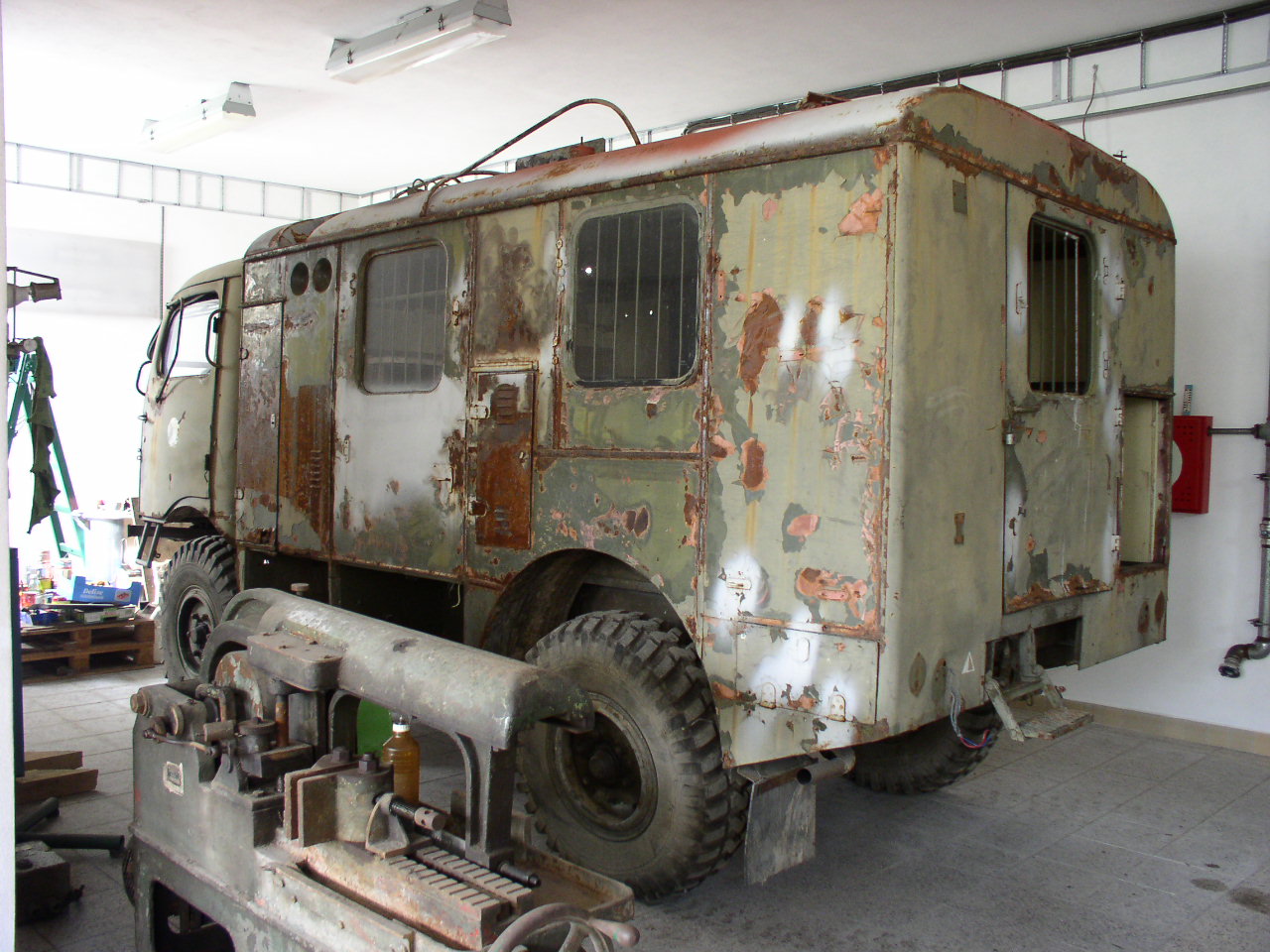 Maják není, a nebude, u tohoto vozidla budu přísně dodržovat dobovou originalitu, tzn. blinkry z kabiny pryč, zpět kulatá zrcátka (už je mám od p. HOOZE ) a vše tak jak má být. Jinak auto je od armády do civilu od 1975, a hasiči mi auto předali včetně výbavy ( orig. řetězy, let lampa+ nahřívací nástavce, nářadí, hustilka na pneu, orig maznice ) . Horší to bude s interiérem, jelikož původní přepážka uvnitř skříně tu není, a jsou zde autobusové sedadla. Zatím se budu věnovat exteriéru, a časem se nějak uvidí, co s interiérem.ondrej napísal:celkom pekná Tatra - dúfam, že ten maják "vzor kozoroh" tam už nie je..