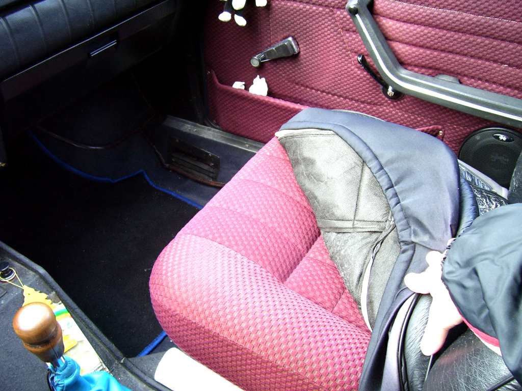 Predná spolujazdcova sedačka, rovnaká je aj šoférova. Všetky sedačky mali dakedy barana a ktovie či na nich dakto sedel na origoš poťahu.