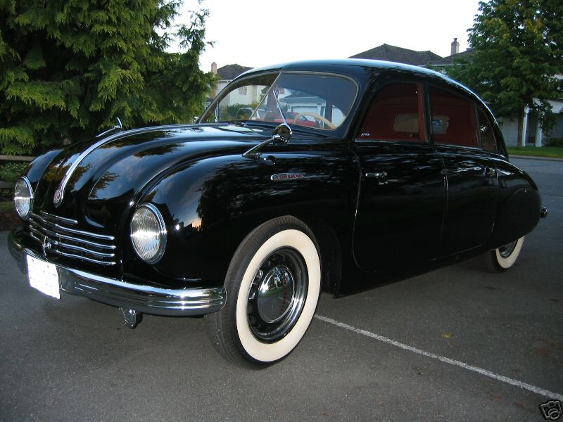 If you have never seen a car quite like this one before, don't be surprised. IT IS RARE. This is a CZECHOSLOVAKIAN built TATRA model T-600 or TATRAPLAN. This Beauty was handcrafted in 1950. It boasts a 4 cylinder AIR COOLED ENGINE which is SITUATED IN THE REAR. The motor and transmition are sprung by TORSION BARS over INDEPENDENT, swinging HALF AXLES. The front suspension is also independent and incorporates 2 super imposed TRANSVERSE LEAF SPRINGS. The steering is by RACK & PINION.