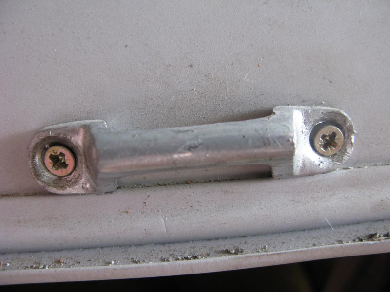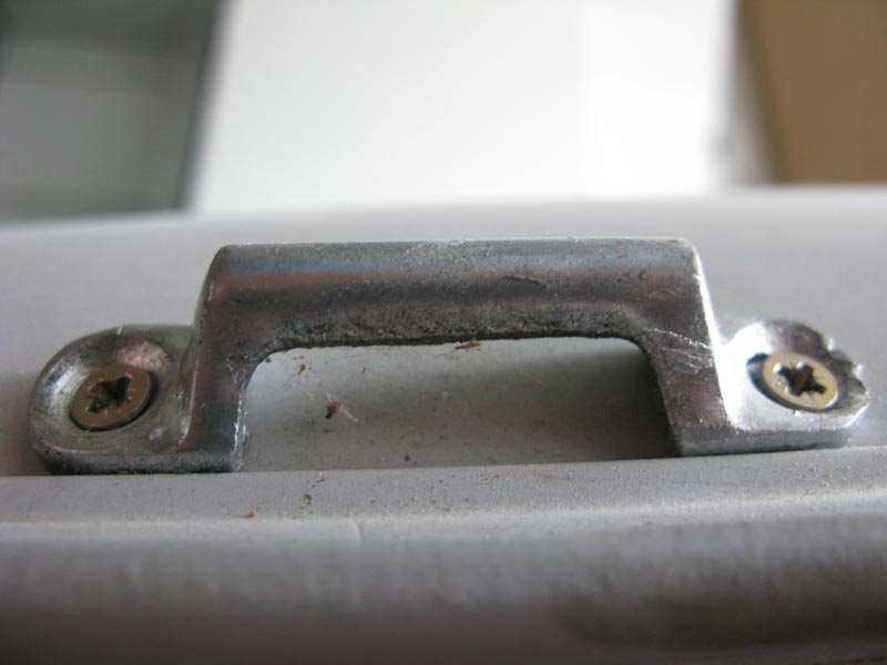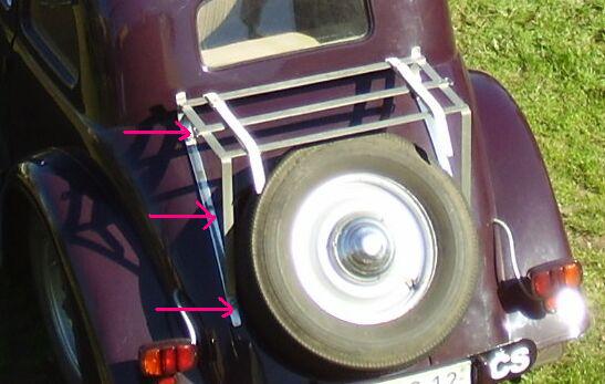 Ten zadní nosič je na chromované liště, která je ke kastli přichycena 3 šrouby. Ty krajní procházejí skrz kastli ze zavazadlového prostoru skrz lištu a na jejich vyčnívajícím konci je křídlovou matkou přichycen samotný nosič. Prostřední šroub je obyčejný vrut do dřeva (samozřejmě s čočkovou hlavou a drážkou) kterým je lišta jen lehce přišroubovaná ke kastli.