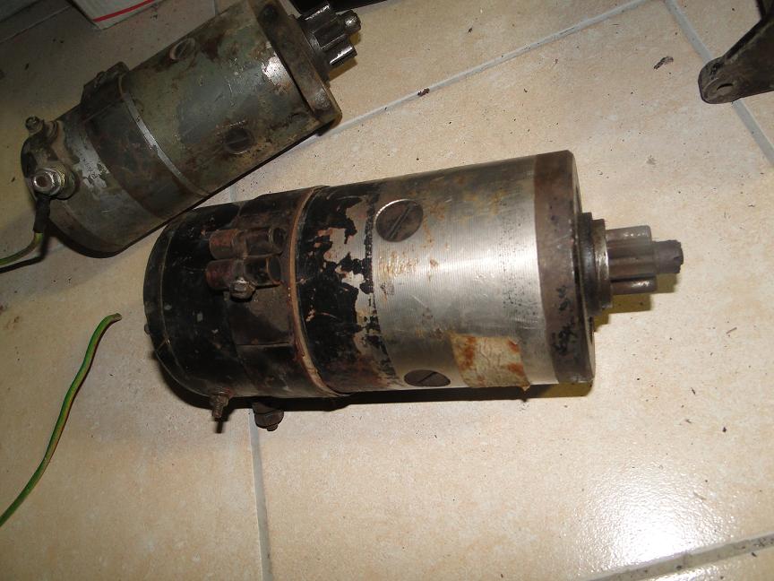 Do tohoto staršího uchycení ,,na přezku,, by měl pasovat startér Scintilla RA 0,45 HP (průměr těla cca. 9 cm a délka těla startéru (bez ozubeného kolečka) cca. 19 cm). Také se používal nějaký Bosch (patent Bendix), ale bohužel ho momentálně nemám po ruce a tak nevím typ ani rozměry.