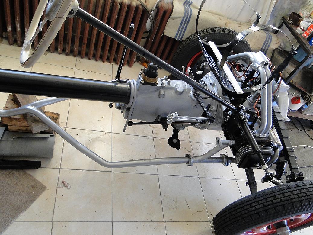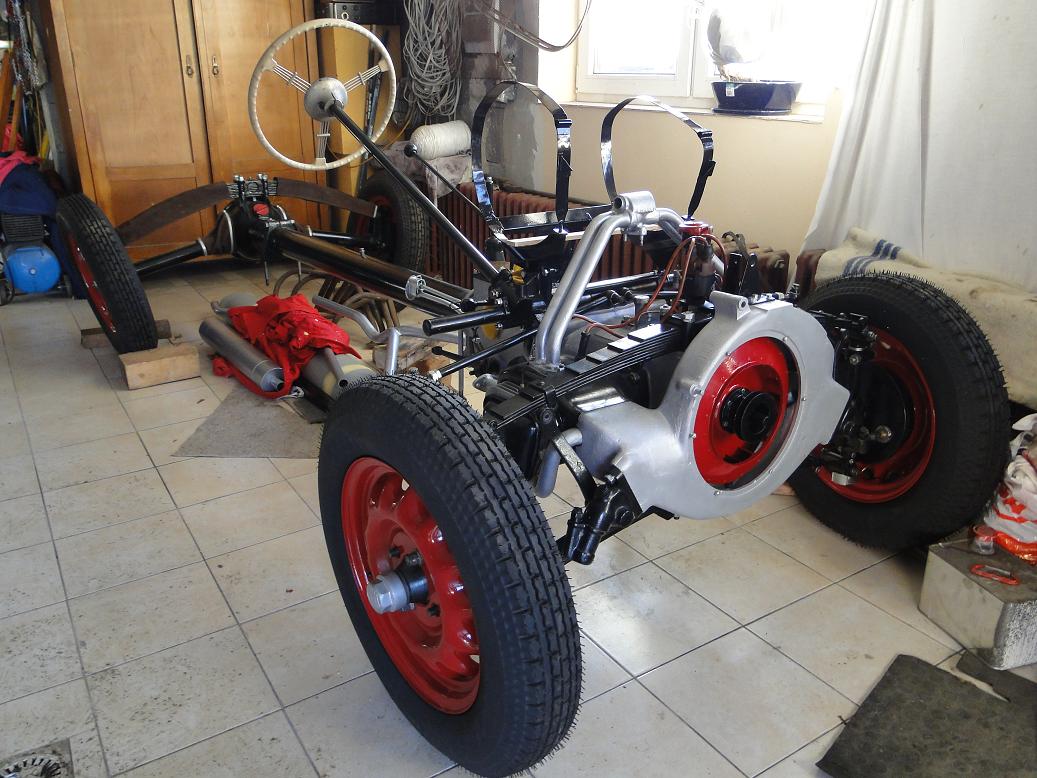 Dlouhé Áčko a Béčko mají to prostřední, dodatečně vkládané prkno podlahy jen mezi převodovkou a prostředním nosníkem. Žehlička a krátké Áčko ho mají po celé délce podlahy, protože mají tlumič na diferáku a nemají plechový kryt na nosné rouře. Podle fotek v tom starém vlákně je váš vůz skládačka z několika typů. Hlavní a největší část podvozku odpovídá dlouhému Áčku (1936-8), ale klidně by to mohlo být i první Béčko (1938), které má vlatně jenom větší válce motoru.