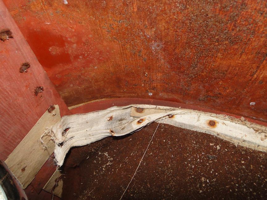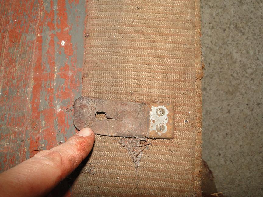 Pod tím tapecem je cca 2-2,5 cm jen spodní rám dveří. Tam byla i v této výšce plochá guma zaklepaná hřebíčkama po celé spodní délce dveří.