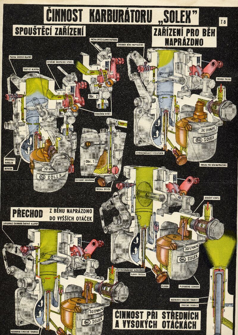 Právě spotřeba je ten problém...v druhé polovině třicátých let jsou v dobových časopisech i jiné motoristické literatuře celkem hojně zastoupeny reklamy a inzerce dílen zastupujících firmu SOLEX na výměnu karburátorů, kvůli úspoře paliva. Firmy montující do vozidel úspornější karburátory SOLEX dokonce nabízely protiúčet za starý ZENITH. Proto pochybuji, že by fabrika do vozů ke konci třicátých let montovala už tehdy z provozních důvodů nevyhovující a zastaralé karburátory ZENITH. Mám někde prospekt na chassis T75 z roku 38 a je tam SOLEX. Berte to s rezervou...je to jen moje úvaha. Po válce se Solex 30 dělal pod značkou PAL-SOLEX, později už jenom PAL. Jsou to prakticky totožné výrobky lišící se často kvalitou. Hodně motorů bylo takto osazeno těmito SOLEX (PAL) karburátorama, později ještě modernějšími karburátorami JIKOV, které šly se spotřebou ještě níž.