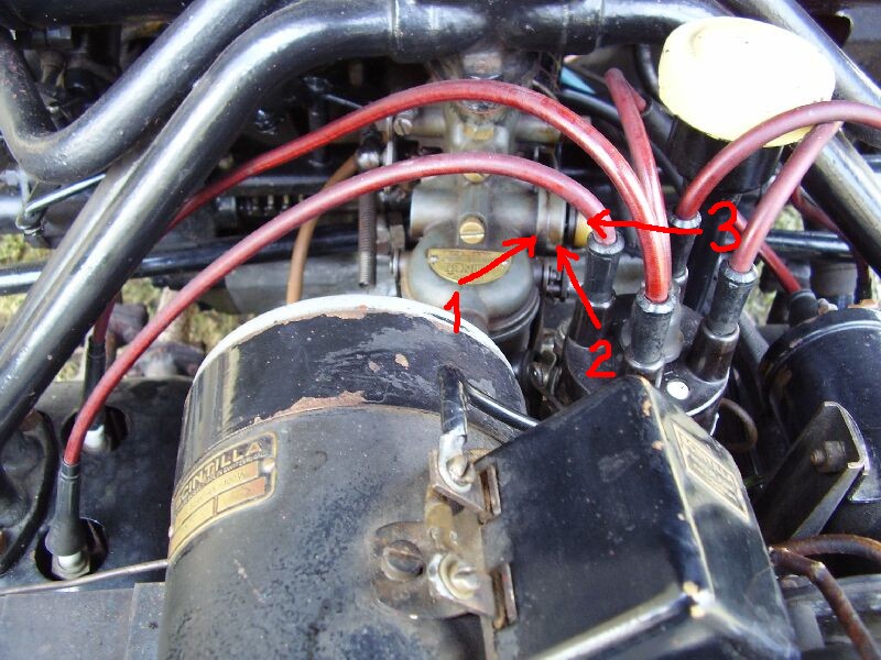 Není ta základní destička sytiče (1) nějaká popraskaná? Doléhá a těsní otočná destička (2) sytiče na pevnou destičku celou plochou? Není pružina (3) přitlačující otočnou destičku prasklá?
