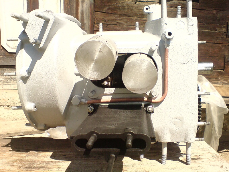 Kolegové, jen tak pro zajímavost bych s vámi rán zkonzultoval následující věc - při rozebírání mého aktuálního projektu jsem narazil na variantu motoru, kterou jsem dosud neznal. Plocha pro uložení horního pera je o cca 5 cm výše než ostatní horní plocha motorové skříně (resp. tato je oproti ploše horního pera o těch 5 cm níže) a nalévací otvor i komínek odvětrání je na víku kontrolního obdélníkového otvoru. Nejdříve jsem si myslel, že by to mohl být nějaký bastl, ale vypadá to dost seriózně, komínek je uvnitř zúžený na nějakých 5 mm a uvnitř je výstup překrytý plechem, takže odfuk musí ven jakýmsi labyrintem a navíc případný samostatný odfuk není kam dát, protože na horní ploše skříně není žádná jiná zarovnaná plocha. Také upevnění rozdělovače je jiné - není tam zalitá ocelová trubka tak jak to znám, ale na ploše horního pera je přišroubovaná hliníková objímka se šroubem pro sevření krku rozdělovače. Více ukazuje foto, znáte někdo tuto variantu? Mělo by se jednat o rok 1932.