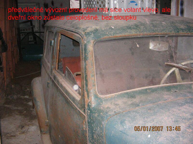 Před válkou sice asi vznikla serie vozů s levostraným řízením, ale ty měli lištu na boku přišroubovanou a v oknech nebyli falešné větračky (měly celoplošná dveřní okna a jiný mechanizmus jejich stahování). V pozdějších letech ale mezi jednotlivými typy dost často docházelo k míchání dílů, dokladů i výrobních štítků a tak je dnes dost problematické určit skutečný rok výroby. Aby to bylo ještě složitější může jít také o pozdější tovární výměnu poškozené původní karoserie za novější, případně o karoserii vzniklou u licenční firmy. Každopádně obsah motoru 1256 a výkon 25 Ks mi k roku výroby 1937 moc nesedí.