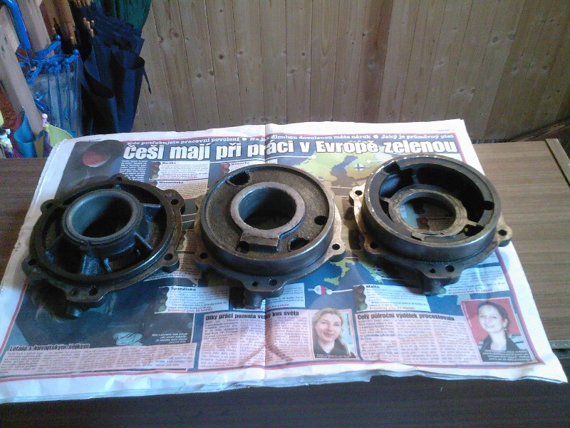 V zásobě náhradních dílů mám i zadní ložisko,kde je tělo odlité nikoli z litiny, ale zřejmě z elektronu, či jiné aluminiové slitiny.