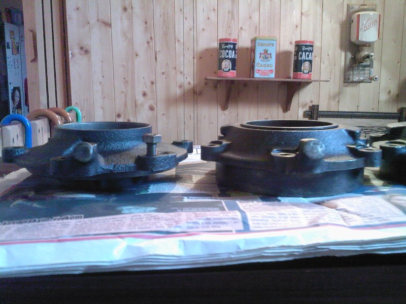 Na posledním obrázku zcela vpravo je masivní víko ložiska samodomo předělané pro kuličkové ložisko.