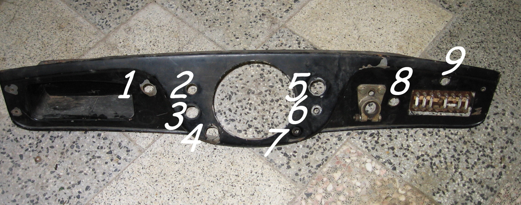 Máte to vcelku správně, 1 tam být nemá, ale 9 by mohla být na ruční houkačku, 7 je vypínač osvětlení palubní desky (tachometru)