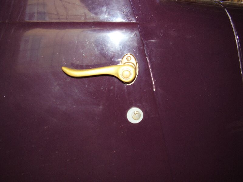 Tak aby nám ta debata neusnula posílám foto Áčkových dvěří s přídavným zámkem a se zaslepeným otvorem pro zámek v původní klice. Jak zde již bylo zmíněno původní jemný zámek v klice časem odešel (dá se nahradit upraveným zámkem ze zadní kliky Š-1203) a navíc nechránil vůz dostatečně (dal se snadno vyřadit z činnosti) a proto byl často montován přídavný zámek. Tento přídavný zámek (i když už bez té ochranné klapky) sa vyrábí dodnes pro vozy P-V3S.