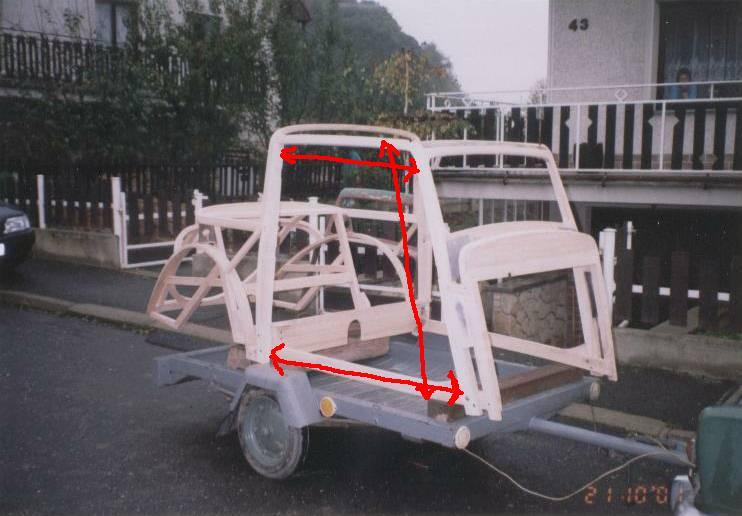 Pro přibližnou orientaci jsem něco naměřil, ale ty rozměry jsou opravdu u každého auta jiné. Navíc jsou trámky různě zakřivené a tak se ,,přímé,, délky špatně měří. Hodně také zkresluje oplechování (kvůli měření auto párat nebudu).