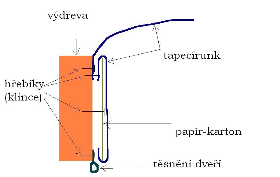 Ten pruh koženky na dveřích je v originále tuším přišitý k látce. Dost často se to ale později řešilo pouze jeho přilepením na látku.
