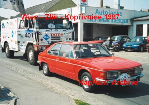 Spomienka na Rally Wien - Zlín - Kopřivnice 1997 už tiež patrí do archívov. Na obr. vidieť coupé na jeho premiérovej jazde po vtedajšom znovuoživení po dlhom státí, ako aj napr. známu T 613/603 z Plzne, ktorú tam svižne preháňala jedna mladá dievčina - už aj to je kus histórie značky Tatra, ktorú sme vtedy ani si to neuvedomujúc pomáhali písať. Túto rally stále hodnotím tak trocha nostalgicky ako najlepšiu tatrovácku akciu, ktorej som sa zúčastnil... Kde len vtedy ešte boli mnohí dnes takí dôležití "Takytatrováci"..
