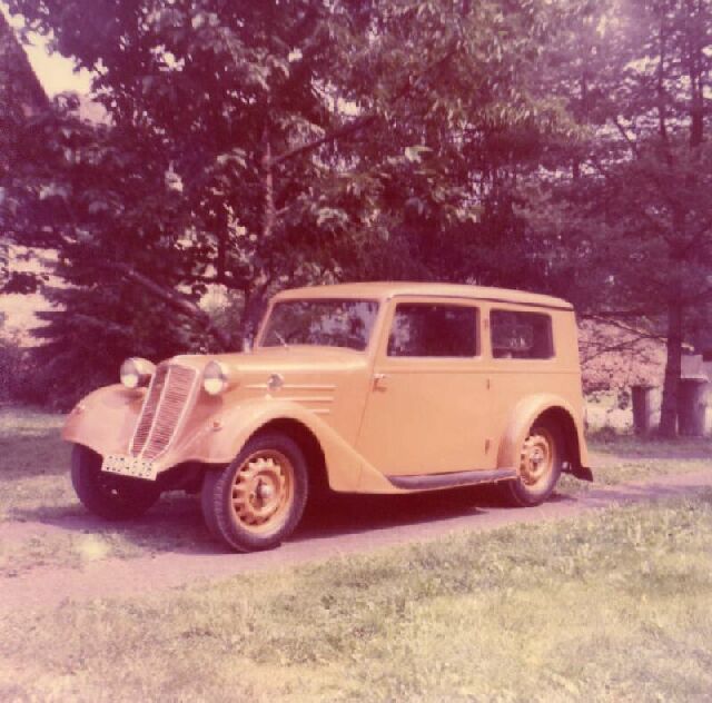 Ještě bych se vrátil k těm prospektům A kombi 1 a 2. Oba vozy mají stejné číslo (SPZ), stejně naklopené pravé zpětné zrcátko na dveřích a stejně natočená kola, ventilkem nahoru. Jedná se zřejmě o jeden obrázek , do kterého bylo namalováno (nebo naopak zaretušováno) okno s opěradlem sedačky. To opěradlo se mi taky nelíbí. Mělo by být v úrovni zadních kol a ne až tak vzadu u zadních dveří. Podle tvaru reflektorů bych tipoval na rok 1935.