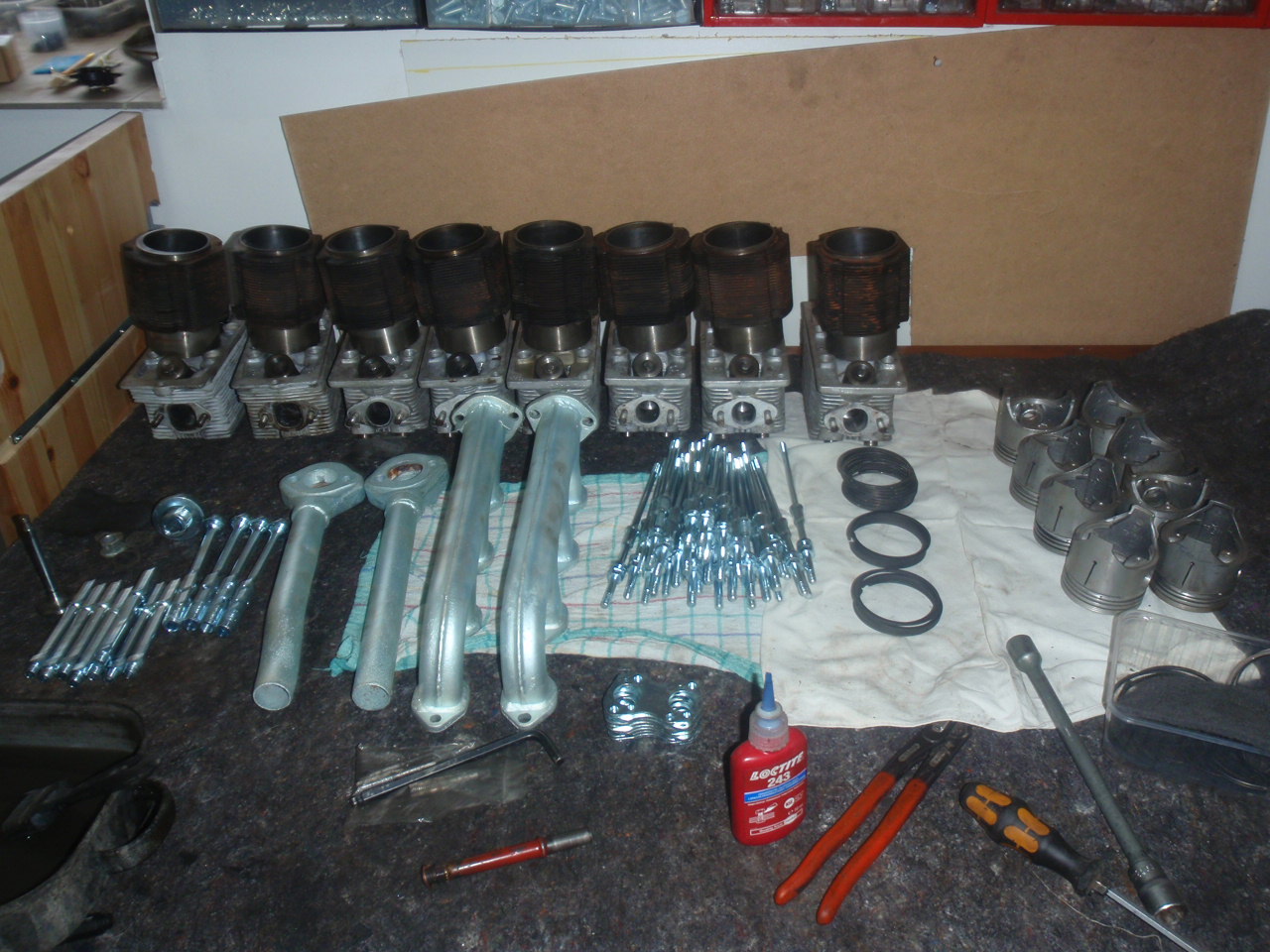 kliku a ojnice jsem si nechal jen přesadit odborně, protože to šlo do jiného bloku. Na hlavách se musely udělat závity na trubky, co sváděj olej a dát kratší štefty.Víka převrtat a upravit zevnitř, protože centrála má na vrchu matky a motory do aut tam mají šroub.