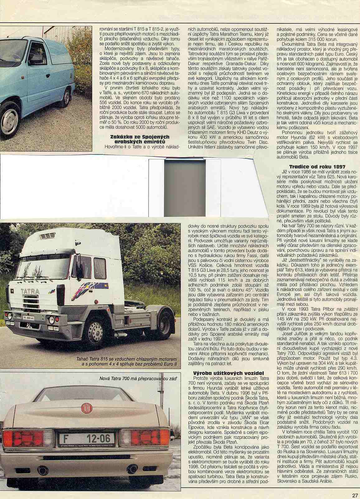 Vkládám nascanovaný text ze Světa motorů, který jsem si z něj vytrhl jen proto, že v něm bylo velké logo Tatry, které jsem okamžitě vlepil do svého alba Tater..